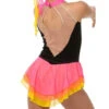 You will love this Hungarian-inspired folk dress–it just makes you feel like a polka just looking at it!! Italian matte tricot body with stretch lace bodice–corset accent down torso just ready for crystals. Deep rounded back is supported with nude mesh and nude straps. Traditional skirt with contrast stretch illusion mesh underskirt.