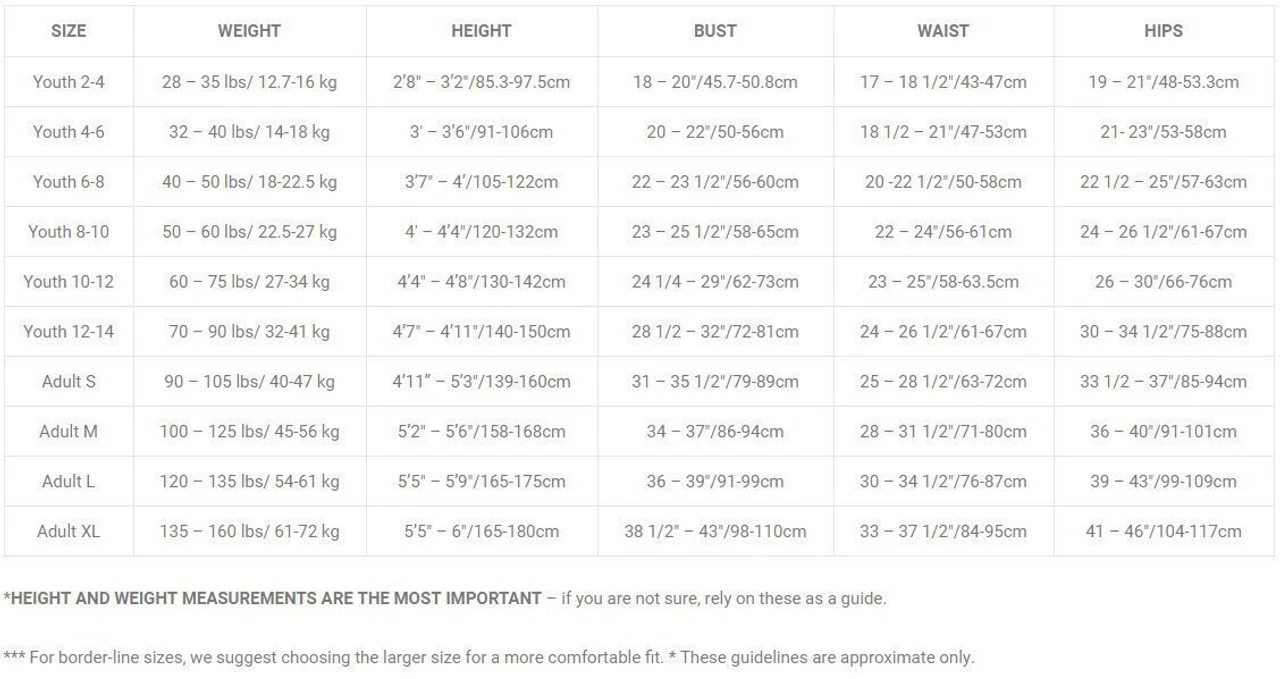 Sizes: Youth 6-8, 8-10, 10-12, 12-14 – Adult Small, Medium