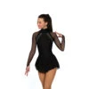 Our ever popular glitter lace is now available in an updated design with long, lacy sleeves, a triple layer skirt and an asymmetrical wrap-inspired neckline trimmed in matching velvet. Lined.