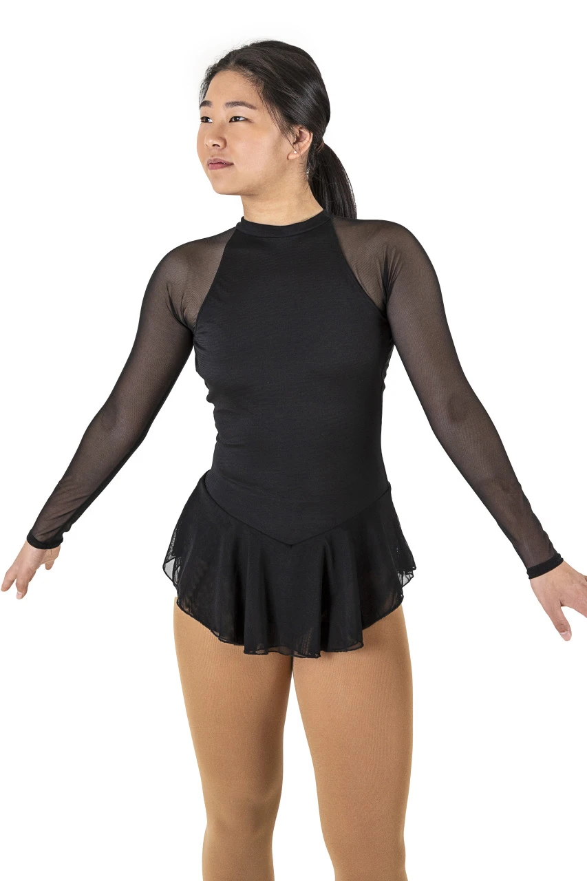 New for 2020 Posh Icewear presents this edgy asymetrical sleeveless dress. This dress is made of 4 way stretch microfiber with power mesh over top. Dress 2004 boasts an asymmetrical double mesh skirt leaving a raw finished edge for ultimate flow and motion. Posh’s 2020 line is MADE TO ORDER. Please allow 2-3 weeks for dress to be made.